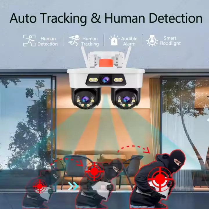 🎯 Funcție Dual PTZ – Cap dublu mobil