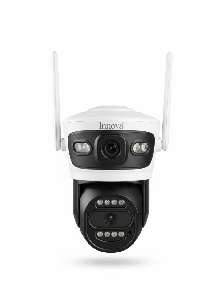 Îmbunătățiți securitatea locuinței sau a afacerii cu Camera de Supraveghere Duală INNOVA X-TRAK, o soluție robustă și versatilă pentru monitorizarea eficientă a oricărui spațiu. Echipată cu două lentile de 3 MP fiecare și dotată cu funcții avansate, această cameră oferă o acoperire completă, zi și noapte.