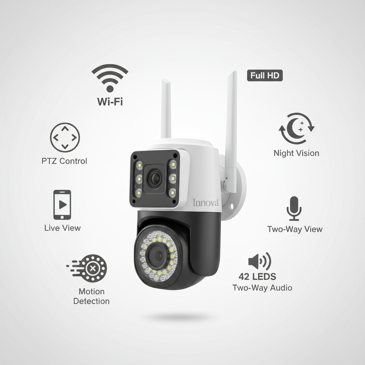 Cameră Supraveghere Video Duală INNOVA VISION SMART 6MP , 42 Led, Vedere 360°, WiFi, Vedere Nocturna,Live Pe telefon